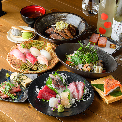 鮮度抜群で旬の魚介を堪能いただけます。お魚はもちろん、お酒を楽しめる盛り合わせもご用意しております。