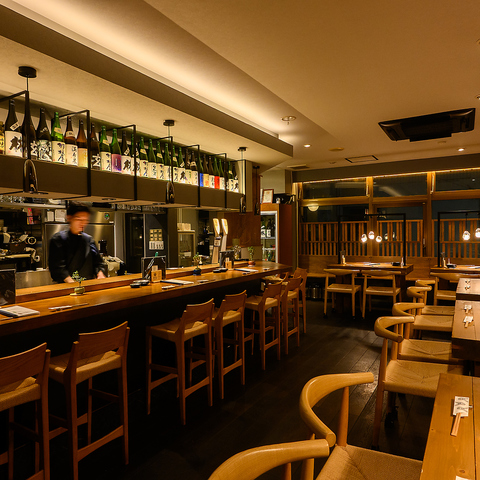新鮮料理に相性抜群のお酒をご用意しております。木の温もりを感じる落ち着いた雰囲気の店内は、ゆっくりくつろげる空間になっておりますので、お一人様でも、お気軽にお立ち寄り美味しいお酒と料理を堪能できます。お仕事帰りのサク飲みや、友人同士の飲み会や女子会、各種宴会等と幅広くご利用出来ますので、お料理とお酒をお楽しみください◎