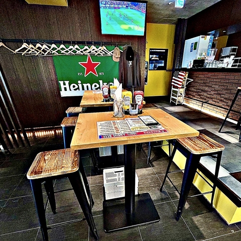 | テーブル | 2名様×6 | お席は、全席ハイテーブル&ハイチェアのオールドアメリカンスタイル!大人な雰囲気が溢れ出すレンガとウッド調の店内に、チェダーチーズが流れ込んだような遊び心あふれる空間で、今日のチートデイを楽しんで! |