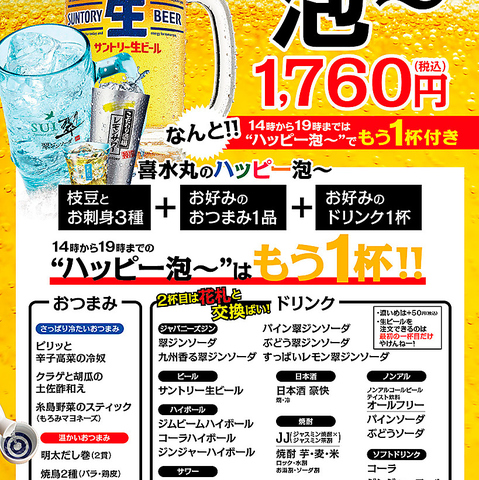 なんと!もう1杯ドリンク付き!『ハッピー泡~』