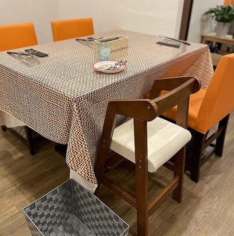 | テーブル | 4名様×4 | 安心してお子様もご来店いただける様に、お子様用の椅子を2つご用意しています。 |