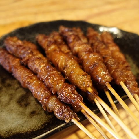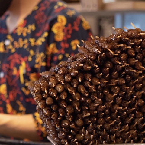 とりかわを串にぐるぐると巻き付け、何度も焼くことで、外はカリッと香ばしく、中はもちっとジューシーな味わいに。 1本食べると、もう1本…と食べる手が止まらない美味しさです。 6日間かけてじっくり仕上げる、本物のかわ焼きをぜひご賞味ください。
