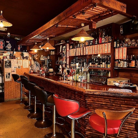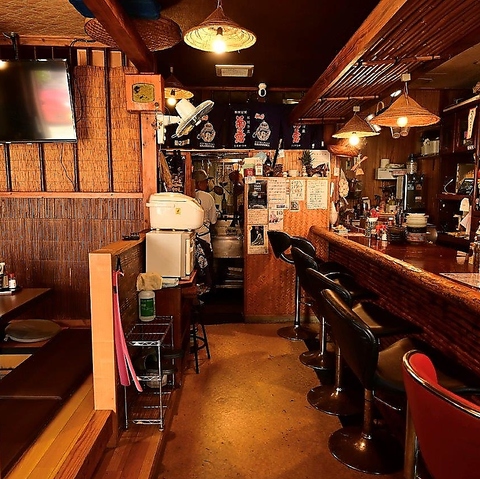 お一人様でのサク飲みやプライベートな時間をしっとり過ごせるカウンター席が8席ございます。カウンター越しには、お酒が進むおでんや、ずらりと並んだ全国各地の泡盛をご用意。気取らない温かな空間で、アットホームなスタッフとの会話を楽しみながら、心ゆくまで憩いのひとときを満喫いただけます。