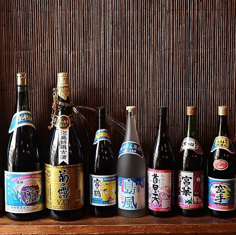 | 泡盛 | 菊之露(Akari/ブラウン)・多良川・島唄・古里(マイルド/30度)・時雨30度・残波黒・おもと・忠孝プレミアム・松藤赤・まさひろブラック・久米仙ブラウン・一本松・瑞泉SKY・龍泉ブルー・龍ゴールド・まるたマイルド・かりゆし |