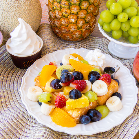 果物店併設だからこそできる、プロが厳選した「旬」のフルーツをタワーのように贅沢に盛り付けた自慢のパフェです♪見た目も華やかで写真映えも抜群◎ジューシーな完熟フルーツと、それを引き立てる素材が織りなすハーモニーはまさに絶品!季節ごとに変わる、その時期一番美味しいパフェをご堪能ください。