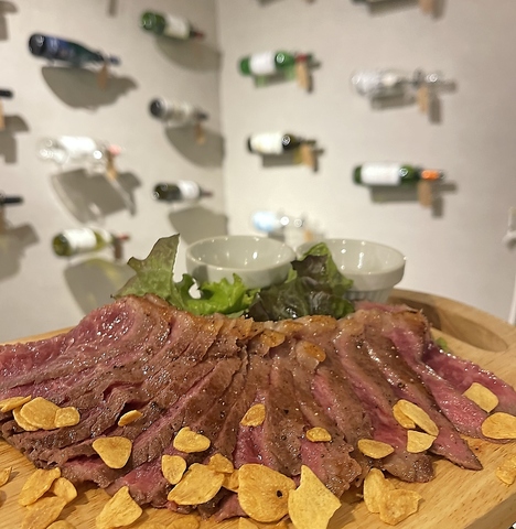 柔らかく上質な牛ランプ肉を、絶妙な焼き加減でレアに仕上げました◎200グラムの大きいステーキはジューシーで風味豊かな味わい!ビールや赤ワインなどとの相性もバツグン♪きっと大満足いただける一品です☆