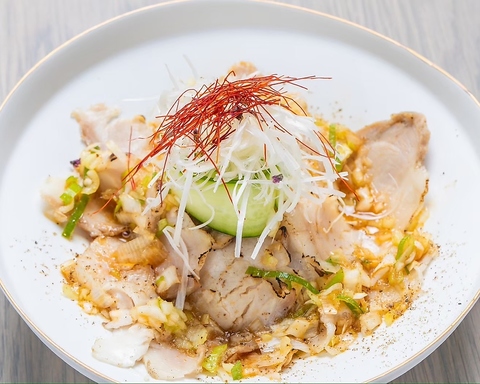 低温調理したアグー豚を炙り、雲白肉ソースをかけてます!お酒が進む肉好きに人気の品です!