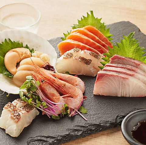 コース料理にもついているお刺身盛り合わせは、北海道産の鮮魚です!お客さんからおいしすぎて驚きの声が!