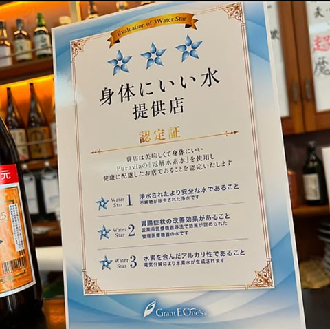 当店ではお客様ファーストを全うする為にお客様の割りものの水、チェイサー等は、身体に良い水【電解水素水】を利用しております!アルコールを摂取しながらも健康な身体でいてほしいですからね♪