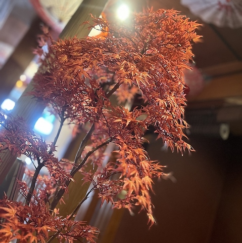 内装は京都をイメージしており、綺麗な紅葉、天井には和傘が施されております