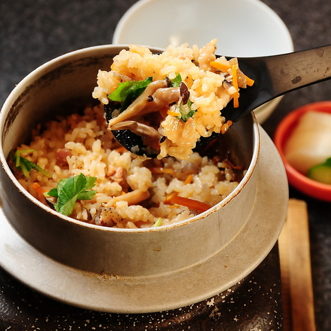 厳選した国産米に、名古屋コーチンの旨味を凝縮した出汁を使用し、一釜ずつ丁寧に炊き上げた釜飯は、炊きたての香りとともに、口いっぱいに優しいコクが広がります。注文ごとに丁寧に炊き上げるため、お時間は35分ほど頂きますので、ご注文の際はお早めにお申しつけください。