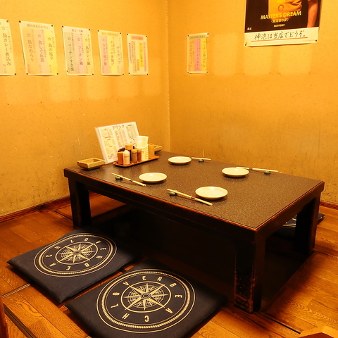 【各種ご宴会に!】4名から最大6名までご利用いただける座敷席のご用意もございます。宴会や接待、ご家族、ご友人とのお食事にもぴったりです。靴を脱いでリラックスできる開放的な空間で、鳥元自慢の鶏料理をお楽しみください。