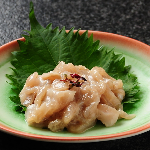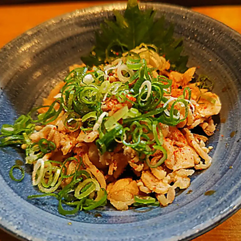 コーチンの胸肉を丁寧に仕込み、秘伝のオリジナル製法で仕上げた一品。まろやかな塩気と独特のコクが、酒の旨さを一層引き立てます。日本酒のアテに最高です。