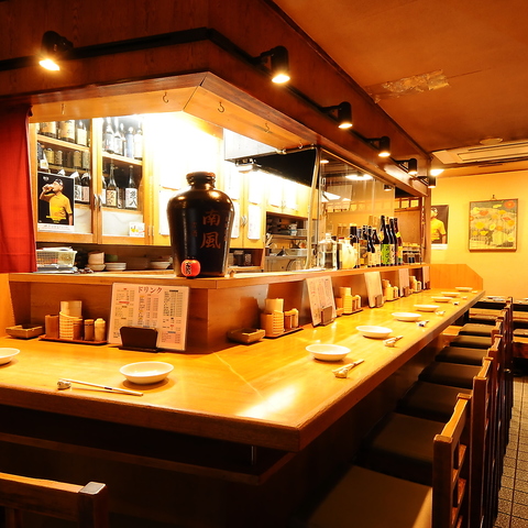 【お一人様にもカップルにも】カウンター席を9席ご用意しております。落ち着いた空間でお料理やお酒をお楽しみ頂けるので、カップルやご夫婦、大切な方とのご利用に最適です。