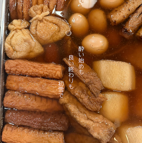 【おでんと日本酒の特別なひととき♪】当店自慢のおでんは、旬の素材を使い、丁寧に仕込んでいます!おでんの温かさと味わいが、日本酒と絶妙に絡まり、特別な体験を提供します☆お仕事帰りのサク飲みや、ご友人との飲み会などにおすすめです!