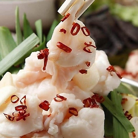 2H飲み放題付全10品とボリュームたっぷり!看板料理の鶏むねたたきを含む、六文銭のもつ鍋コースです!九州でも有名な農場より特選の和牛もつ鍋が絶品!もつの多さも好評の一品です!現在、質の高い和牛もつは流通量が少なく、入荷の難しい希少部位となっております。口溶けの良い良質な脂とプリプリの食感をご堪能あれ!
