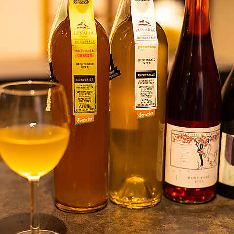 なんとなんと! 土日祝限定!12:00~23:00まで通し営業中!世界中から厳選したナチュール, オーガニックワインを半額で提供!内容日替わり 泡,白、赤がALL2000円(税込)~!超絶お得ですので,2名から仲間内,職場の飲み会でも是非♪