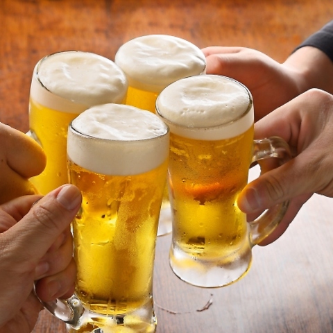 生ビールはもちろん、日本酒や焼酎などを含めた単品飲み放題!4名様~当日でも受付可能となっておりますので、宴会だけでなく突然の飲み会やお集まりなど様々なシーンに対応可能!定番の肉汁餃子やお好みの料理と共に心ゆくまでお楽しみください!