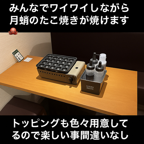 大切な方と過ごす一日には自慢のたこ焼きプレートやシャンパンなどで特別な時間を彩るお手伝いをいたします。音楽・ダンスのイベントやお店の最新情報はSNS@tsukitako_0322を是非チェック!非日常な楽しい時間をお届けします♪