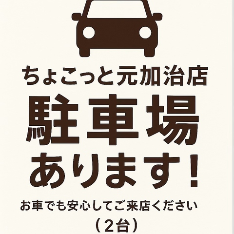 『居酒屋ちょこっと元加治店』では、駐車場も【2台分】完備!お車でも安心してご来店ください◎