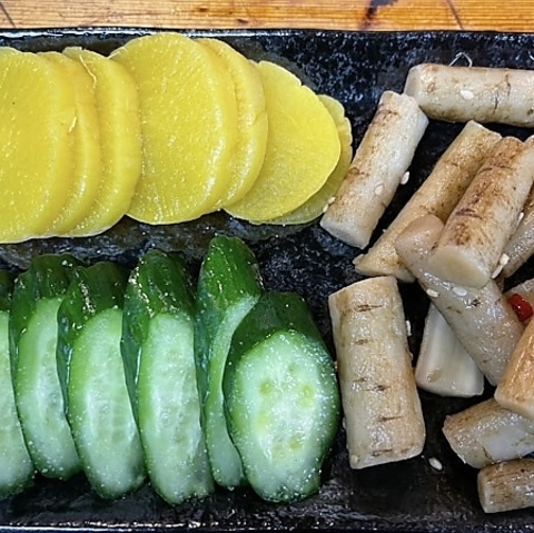 大根の漬け物は甘みと酸味のバランスが絶妙で、食欲をそそります。きゅうりの漬け物はシャキシャキとした食感が特徴で、さっぱりとした味わいが魅力です。また、根菜類の漬け物は、しっかりとした味付けがされており、噛むごとに旨味が広がります。白ご飯やお酒のお供としても最適で、和食の食卓を彩ってくれます♪さっぱりとした風味の漬け物は、お酒のアテにぴったりの一品です。
