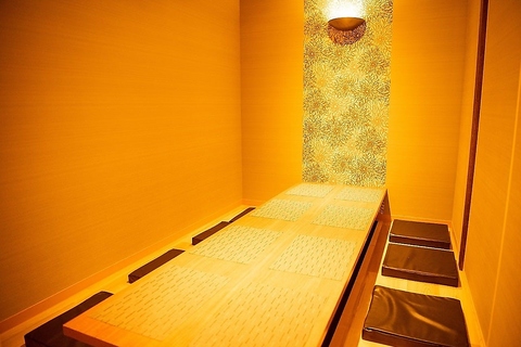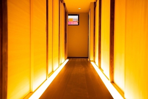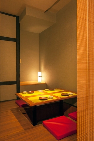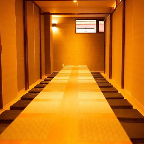 壁・扉ありの完全個室をご用意。間接照明の上品な灯りが優しい雰囲気を醸し出しております。28名様まで収容できる個室や、大宴会は50名様までOKです!癒しの和風空間では、ゆったりと寛ぎながら当店自慢のお食事をご満喫いただけます。翌1時まで営業しておりますので、たっぷりと楽しい時間をお過ごしくださいませ。