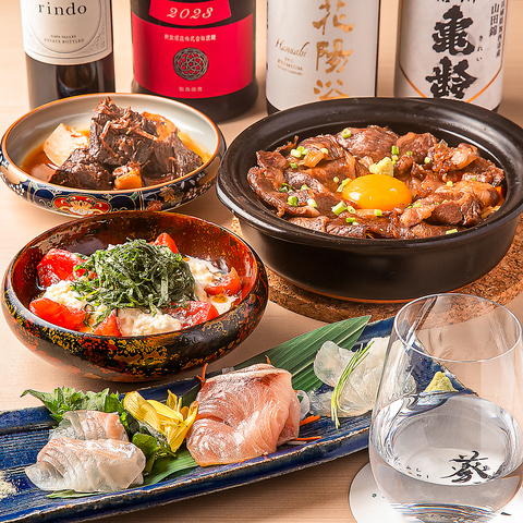鯵フライや肉じゃがなどの当店の人気料理が勢揃い!飲み放題なのに日本酒10種、自然派ワイン3種が飲み放題