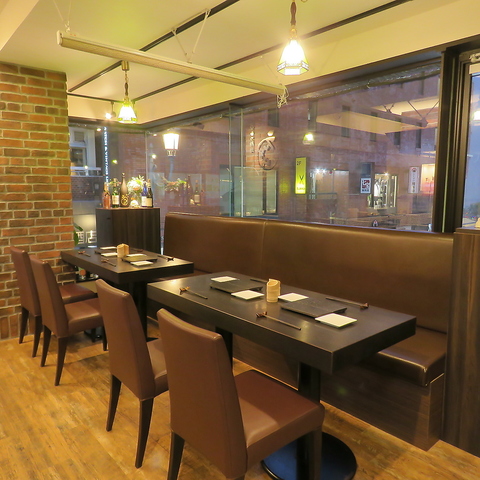 カラス張りで開放感があり、2階なので人目を気にせず、ゆっくり食事とお酒をお楽しみいただけます。