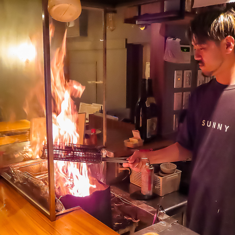 【居心地の良い活気あふれる空間】活気に満ちた居心地の良い雰囲気の中で、心地よいお食事を愉しめます。目の前で調理される美しい焼き台を眺めながら、コの字型のカウンター席でのひとときや団体様向けのテーブル席での楽しい宴会が可能です。さまざまなシーンにぴったりなおしゃれな空間で特別な時間をお過ごしください。