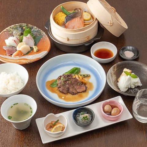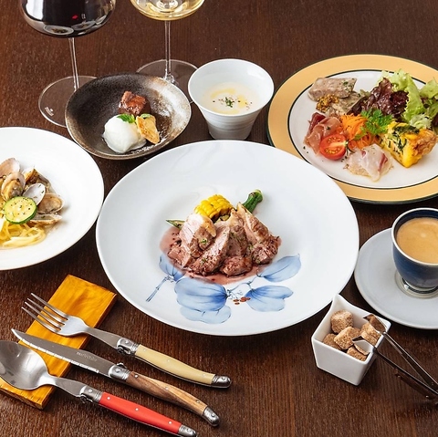 旬の食材を使った和と洋別れたランチコースが人気!前菜からデザートまでバランスよく楽しめて、ちょっとしたご褒美ランチにもぴったり。