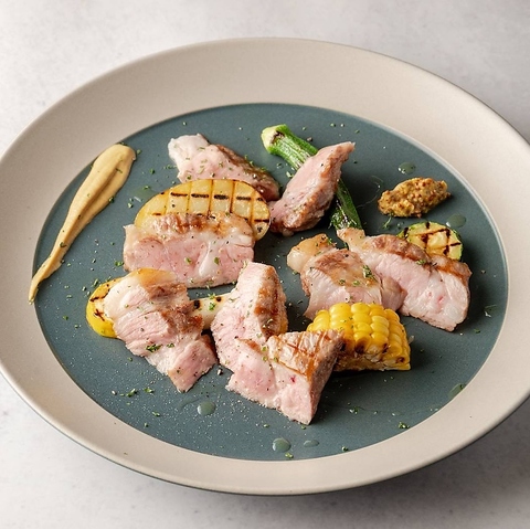 甘みがあってジューシーなきなこ豚。稾(わら)で香りをつけながら焼き上げた、豚の味わいだけでなく、香りも一緒に楽しんでいただきたいメニューです♪