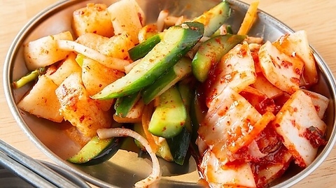 当店のサムギョプサルは厚さ1.8cmと食べ応え満点!!外はカリカリ、中は肉汁たっぷりジューシーに焼き上げ、サンチュに巻いて頬張ればお口いっぱいに旨味が広がります♪極厚ジューシーな生サムギョプサルは旨みもビタミンもた~っぷり!!ネギナムルやニンニクを乗せたサンチュで包んで頬張れば、口いっぱいに広がります♪