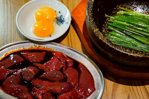 加工場直送の鮮度抜群新得地鶏のレバーを使用!卓上で熱々の石焼鍋を使いお客様自身で焼き上げお召し上がりいただきます。レバーの臭みがほぼ無く自家製のタレが食欲とお酒をそそります!