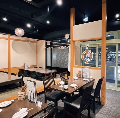 テーブル席は1名様~最大で48名と、人数に応じてご案内可能です。女子会でも、会社宴会でも、様々なシーンでご利用いただいております。お仕事帰りのサク飲みや、ご友人とのお食事など、各種ご要望にお応えできるようにお教えします。