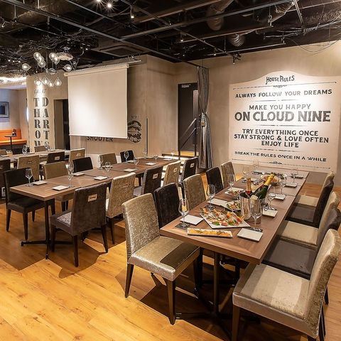 大人数でお集まり頂く、企業イベントやパーティーなど様々なシーンで欠かせない「プロジェクター」を完備しております!結婚式の二次会や同窓会では思い出の写真を投影したり、企業イベントでは資料を投影することも可能です。レイアウト自由自在の貸切は最大120名様までご利用頂けます。