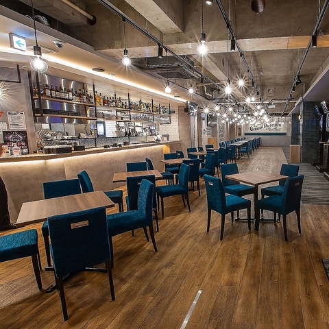 <広々としたメインフロア♪>各種イベント・宴会・二次会パーティーまで様々な楽しみ方ができます。着席時64名様・立食時120名様ご案内可能!