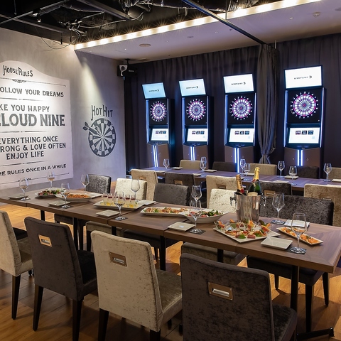 まるで非日常空間!クラブのようなオシャレな大人の遊び場で、ダーツとお酒と共にパーティーをお楽しみ下さい。ダーツ台、モニタ、プロジェクターなど完備!お酒にあうアラカルトメニューも豊富にご用意しております!結婚式の二次会などのご利用にも◎