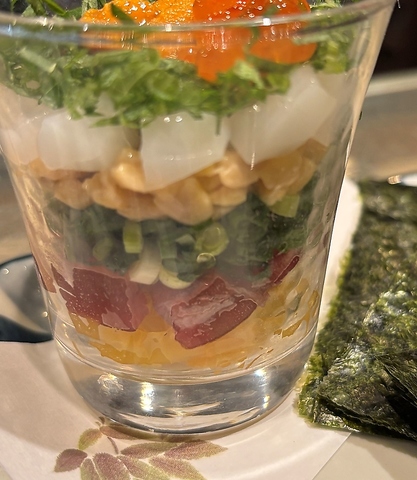 「雲丹・いくら・かに・ねぎとろ」をたっぷりと乗せたこぼれ寿司。お腹も心も満たされる大人気メニューです。