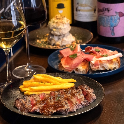 やわらかく焼き上げた牛赤身ステーキ。赤身ならではの旨みをしっかり感じられ、赤ワインと相性抜群の一皿です!ソムリエの資格を持ったオーナーおすすめのワインを一緒に召し上がってください☆※100g1628円(税込)、200g2178円(税抜)