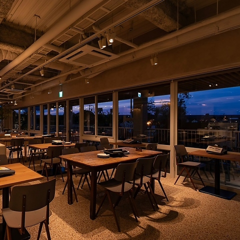 《店内から望む海岸線☆》店名通り、海のすぐそばにある「 青いナポリUMISOBA」。年中無休で11:00~22:00営業。駅から5分でお仕事終わりの食事や休日のご褒美にぴったり◎美しい海と美味しいイタリアンに舌鼓♪テラス席でのお食事は爽やかな風を感じられて格別です。お腹いっぱいで気持ちもリフレッシュ出来るのが魅力!