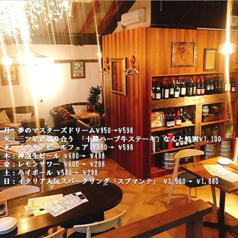 週替わりで人気メニューが超おトクに!月曜マスターズドリーム~日曜スプマンテまで、毎日通いたくなる美味しさをお楽しみください!詳細メニューは画像をチェック◎