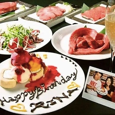 お誕生日や結婚記念日にぴったりの特別コースをご用意◎スパークリングorソフトドリンク。選べる乾杯ドリンクも大好評♪和牛シャトーブリアンや肉寿司、豪華な和牛肉ケーキまで、コース形式で厳選メニューを贅沢に堪能できます。締めは、ネーム入りデザートプレートで!ご満足していただけること間違いなしです。