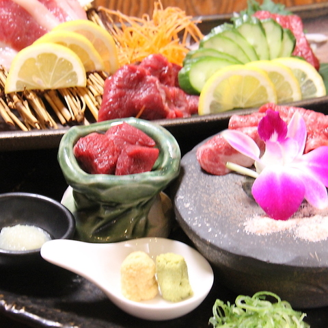 上質の馬肉の味わい、肉本来の旨みを味わえる逸品 飲み放題と一緒にいかがでしょうか。