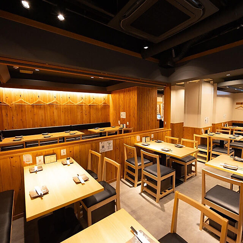 <テーブル席少人数でのご予約に!>木目調のあたたかみある店内は、どんなシーンにもマッチする“いつもの”雰囲気♪気のおけないご友人や職場のメンバーと、ワイワイ盛り上がるのにもってこいのカジュアル空間です!