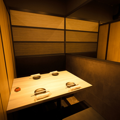 全席個室でご案内。デートや記念日でのご利用におすすめのお席です。静かにゆったりと安らげる空間となっております。お席のみのご利用も承っておりますのでお気軽にお問合せください。