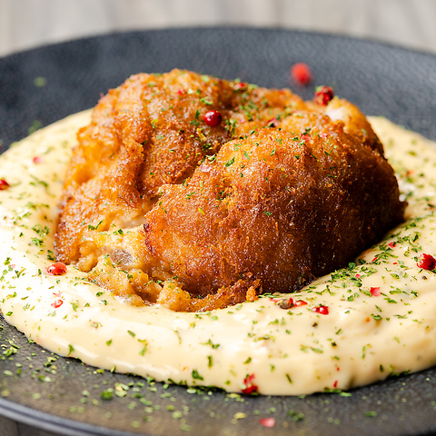 フォトジェニックなカラーのタルタルソースは当店手作りです。