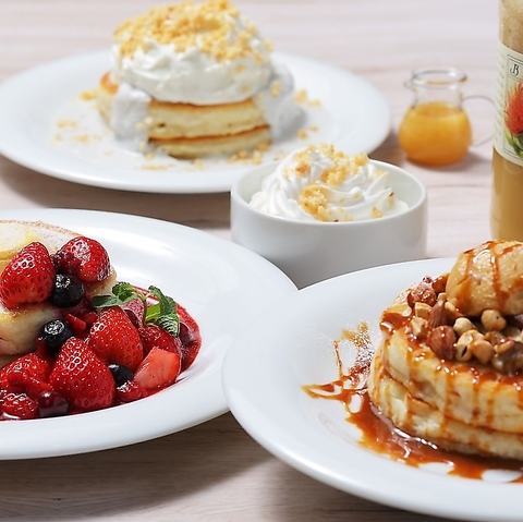 もち粉を使用した、もちっと食感生地がクセになる★爽やかなリリコイバターとふわふわホイップクリームが相性ぴったり◎バナナキャラメリゼ、ベリーベリーなど種類豊富にご用意しております!食後のデザートやカフェタイムにぜひ♪
