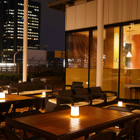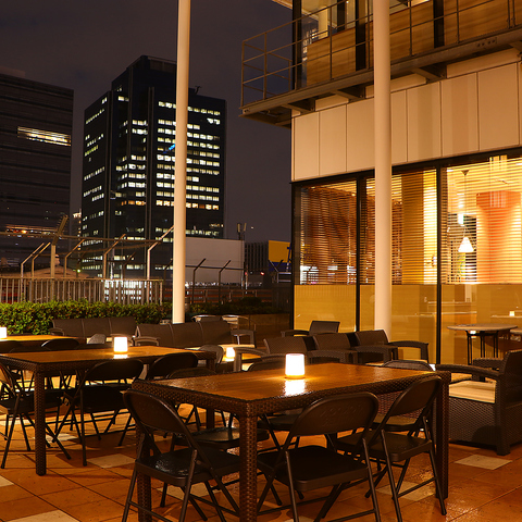 非日常的な開放空間で贅沢なひと時をお楽しみいただけます。最大50名様までテラス席へご案内可能となっておりますので、気の知れた仲間と少人数でのご利用だけではなく、会社宴会など大人数でもご利用可能です。お気軽にお問い合わせください。