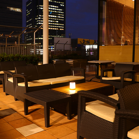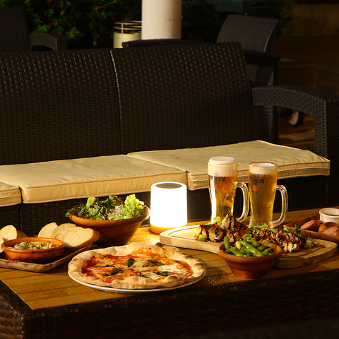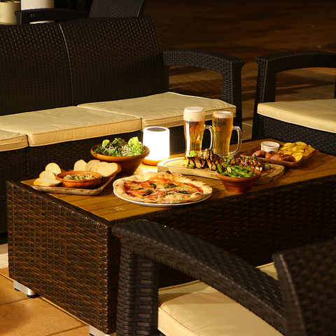 テラスのオシャレなソファ席はゆったりとした雰囲気でワイワイするにも抜群です!