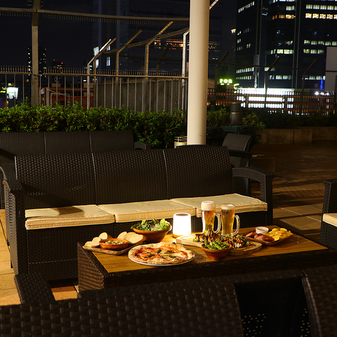 梅田駅からスグという好立地。本格イタリアンにピッタリなビールと広々空間で心ゆくまでビアガーデンをご堪能ください! ※雨天時は可能な限り店内へご案内いたしますが中止する場合もございます。ご了承ください。